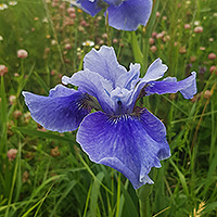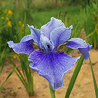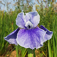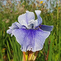 ТЕТРАПЛОИД. Этот сорт - реально финал цветения сибирских ирисов. Самый поздний сорт в коллекции, зацветает нередко только в начале июля (через месяц после начала цветения ранних сортов). Цветы крупные (как у большинтсва тетраплоидов). Стандарты голубые, фолы полупарящие, широкие, в центре синие и постепенно светлеющие к краям до светло-голубого цвета. |