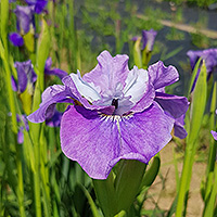 Стандарты лавандово-розовые. Фолы лавандово-розовые с синим вливанием вокруг небольшого белого сигнала. Красивая форма цветка - фолы широкие, полупарящие, цветок близкой к округой форме. |