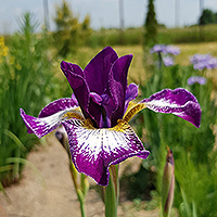 ТЕТРАПЛОИД. Первый по сути пликатный сорт сибирского ириса, который стал предком любимых Judy Judy и Something Shoking. Цветы некрупные с парящими фолами. Стандарты темно пурпурно-фиолетовые, фолы с пурпурно-фиолетовым краем и большим (больше 1\2 лепестка) ярким белым пятном в центре. Цветет очень обильно в числе первых. |