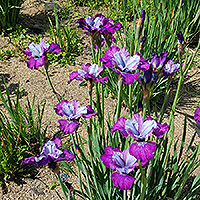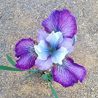 Стандарты очень бледно-пурпурные. Стайлы ярко-голубые. Фолы красно-фиолетовые с более темной каймой. В зависимости от сезона могут выглядеь как светло-пурпурные с темно-пурпурной каймой. Яркий контрастный сорт. Цветет обильно |