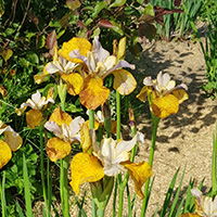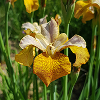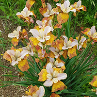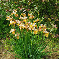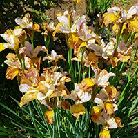 Один из ранних и исключтельно обильно цветущий сорт! Плюс яркий карамельный цвет. Точнее - стандарты бледно-лавандовые, фолы темно-золотистые, обильно покрытые красно-пурпурным напылением, что визуально дает теплый карамельный цвет. Цветы некрупные, но цветение исключительно обильное - куст выглядит как большой букет! |
