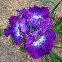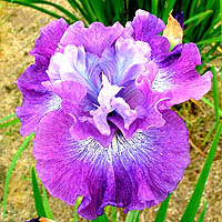ТЕТРАПЛОИД. Очень крупный (15+см) и яркий цветок. Стандарты и фолы красно-фиолетовые с клюквенными тонами. На фолах яркий белый сигнал. Фолы широкие, полупарящие или парящие с волнистой гофрировкой по краю. |