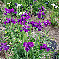 Яркий красно-фиолетовый (клюквенно-фиолетовый) с бархатистой фактурой. Цветы довольно крупные, цветет обильно. Яркий в саду. |