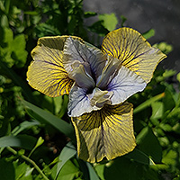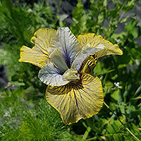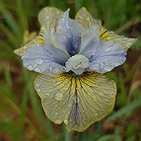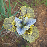 Сорт с необычным визуальным эффектом, узнаваемый. Стандарты очень бледно-голубые. Фолы - по светло-желтому фону голубое напыление и жилкование, что создает визуально эффект дымчато-голубого цвета или оттенка "морской волны". Очень интересно выглядит! Цветок плоский, фолы полупарящие. |