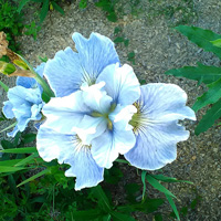 Стандарты и фолы светло-голубые, с легким темно-голубым жилкование, нередко с бирюзово-голубым оттенком. Небольшой желтый сигнал. Фолы широкие, с волнистой гофрировкой, полупарящие. В целом красивый оттенок голубого цвета. |