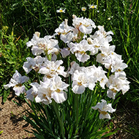 Компактный и ОЧЕНЬ обильно цветущий сорт. Стандарты и фолы ПОЧТИ белые - с бледным сиреневым оттенком (проявляется в прохладную погоду). Фолы полупарящие,хорошо гофрированы. |