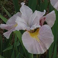 Стандарты нежно-розовый, гофрированный. Фолы - широкие,полупарящие,гофрированный. Фолы нежно-розовые с темно-розовым жилкованием. Цветок довольно крупный. |