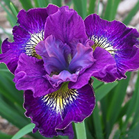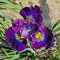 ТЕТРАПЛОИД. Стандарты светло-винно-фиолетовые. Фолы винно-фиолетовые с синим хало вокруг белого сигнала. Фолы широкие, сильно гофрированные. Цветок крупный (12-14 см).Колоритный сорт! |