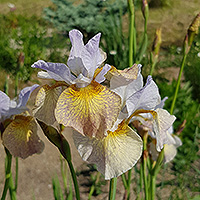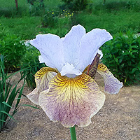 Ранний очень обильно цветущий сорт, на 4-5 летнем кусте может быть 85-90 см. Очень высокий - до 160 см. Цветоносы прочные, прямые, не разваливаются. Стандарты очень бледно-лавандовые, фолы очень бледно-желтые (кремовые) с лавандовым напылением. Цветок довольно крупный. |