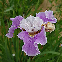 Гибрид ириса сибирского с ирисом щетинистым (sibirica x setosa). Мощный сорт. Цветы довольно крупные на высоких цветоносах. Стандраты небольшие, почти белые. Фолы широкие, волнистые, сочного сиренево-розового цвета. |