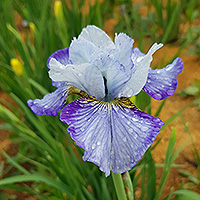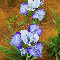 Стандарты очень светло-голубые, с более темной средней линией. Фолы светло-голубые с тонкой, но яркой синей каймой по краю. При повторном цветении фолы могут быть более однотонные, сине-голубые |