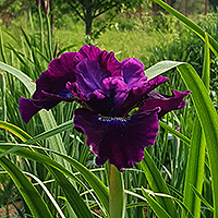 ТЕТРАПЛОИД. Отличный новый сорт Тамберрга, один из последних, в пупрупно-красной гамме. Крупные (12-14 см) цветы с широкими горфированными фолами и гофрированными стандартами имеют бархатистую фактуру. Очень хорош!