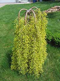 Красивая плакучая форма желтой акации с очень тонкими ажурными листьями. Цветет обильно обычными для акациии желтыми цветами, приобретая еще большое очарование. Прекрасный изящный солитер. Привита на штамб.
