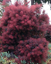 Cotinus coggygria LilaКомпактный сорт с темными листьями. Летом листья глубокого винно-красного цвета, осенью яркие красно-оранжевые. Высота до 100 см. Повышенная зимостойкость (зона 4).