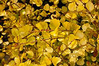 Betula nana Golden TreasureМелкие золотисто-желтые листья.