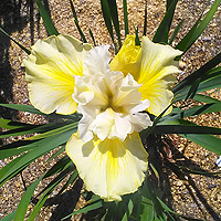 Стандарты очень бледно-желтые до белых, стайлы светло-желтые с более темным центром. Фолы сернисто-желтые, более темные в центре, и почти белые к краям. Сигнал темно-желтый. Фолы широкие, полупарящие, гофрированные. |