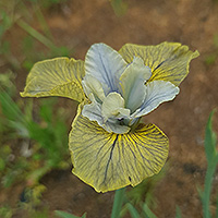 Сорт с необычным визуальным эффектом, узнаваемый. Стандарты очень бледно-голубые. Фолы - по светло-желтому фону голубое напыление и жилкование, что создает визуально эффект дымчато-голубого цвета или оттенка "морской волны". Очень интересно выглядит! Цветок плоский, фолы полупарящие. |