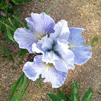 Стандарты и фолы светло-голубые, с легким темно-голубым жилкование, нередко с бирюзово-голубым оттенком. Небольшой желтый сигнал. Фолы широкие, с волнистой гофрировкой, полупарящие. В целом красивый оттенок голубого цвета. |