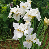 Компактный и ОЧЕНЬ обильно цветущий сорт. Стандарты и фолы ПОЧТИ белые - с бледным сиреневым оттенком (проявляется в прохладную погоду). Фолы полупарящие,хорошо гофрированы. |