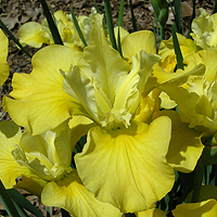 САМЫЙ яркий однотонный желтый сорт, компактная обильно цветущая куртинка. Стандарты и фолы темно-желтые. Цветы довольно крупные для такого карликового сорта (высота всего 35-40 см). |