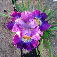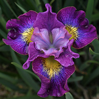 ТЕТРАПЛОИД. Стандарты светло-винно-фиолетовые. Фолы винно-фиолетовые с синим хало вокруг белого сигнала. Фолы широкие, сильно гофрированные. Цветок крупный (12-14 см).Колоритный сорт! |