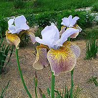 Ранний очень обильно цветущий сорт, на 4-5 летнем кусте может быть 85-90 см. Очень высокий - до 160 см. Цветоносы прочные, прямые, не разваливаются. Стандарты очень бледно-лавандовые, фолы очень бледно-желтые (кремовые) с лавандовым напылением. Цветок довольно крупный. |