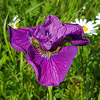 Стандарты светло-клюквенно-красные, фолы средне-клюквенно-красные с небольшим желтым сигналом в синей ореоле. Яркий цвет. |