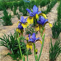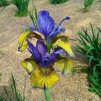 Исключительно я ркий и колоритный цветок. Яркие сине-фиолетовые стандарты имеют темно-синее жилкование. Яркие золотисто-желтые фолы также покрыты легкой сетью темно-синего жилкования. В цветущей куртине (цветет сорт очень обильно) гармонично и одновременно контрастно смещиваются синие и золотистые тона. Куст цветет очень обильно и долго, поскольку каждый цветонос имеет 5-7 бутонов. |