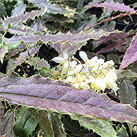 Весення листва цвета молочного шоколада, позже меняется зеленый с винным налетом и пурпурными краями. Цветы очень крупные сливочно-желтые. Высота около 30 см.