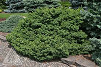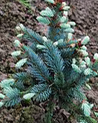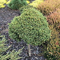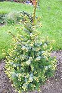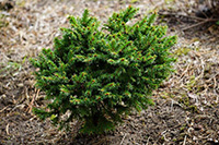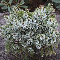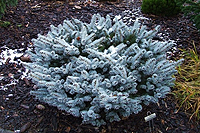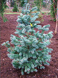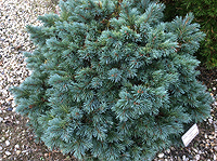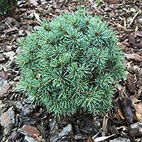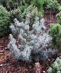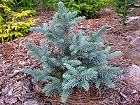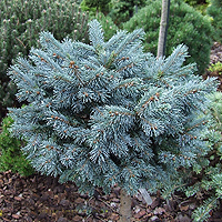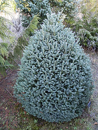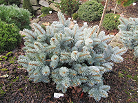 Карлик с темно-голубой хвоей. Годовой прирост 3-4 см, 10 лет высота 25-30 см, диаметр около 40 см, форма полусферическая.