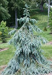 Сорт интересной формы. Концы ветвей дугообразно поникающие. Хвоя яркая сизо-синяя. Высота в 10 лет около 2,5 м, годовой прирост 20-25 см.