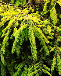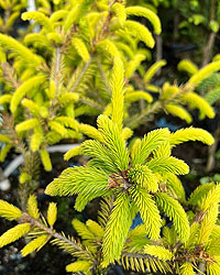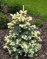 Сорт ели черной (приморской) с ярким золотым напылением. Среднерослая.