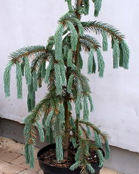 Узкая плакучая форма. Может быть нерегулярной формы. Хвоя с серебристой подложкой. Высота в 10 лет около 2 м, очень узкая.