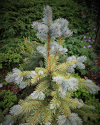 Интересный сорт с переливчатой хвоей - серебристо-голубой отенок выражен сильнее. Крона очень плотная, коническая. Копмпактная ель - в 10 лет высота около 100 см.