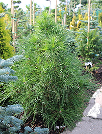 Комапактный соот с длинной темно-зеленой хвоей. Годовой прирост 5 см.