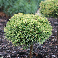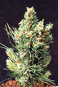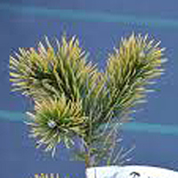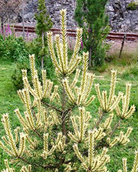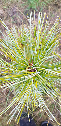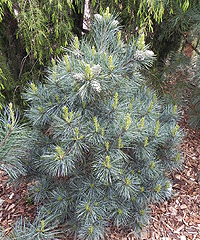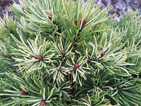 Крупная форма с кремово-белыми приростами и зеленой хвоей. Одна из самых "белых" сосен. Кончики хвой остаются кремовыми до следующего сезона.