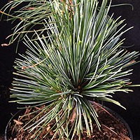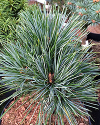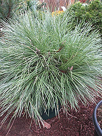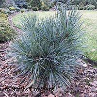 Сосна с очень длинной (до15 см), мягкой и невероятно синей хвоей. Среднерослая, в 10 лет высота 1,8-2м.