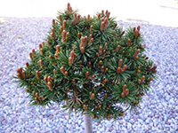 Pinus uncinata FarroСуперкарлик c очень плотной кроной и длинными иглами. Годовой прирост 1,5-2 см.