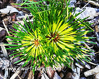 Компактная мутация из известного сорта Dragon Eyes. Яркая трехцветная хвоя - серебристый + голубой + желтый. В 10 лет высота 40-60 см.